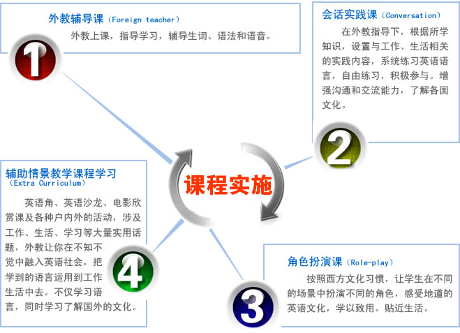 师资力量 | 由中教与外教联合执教(2个以上老师),中教以语法讲解、课外知识补充为主,外教以口语、听力训练为主。每班设班主任1名。 |